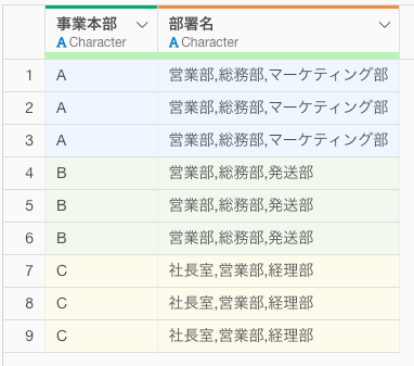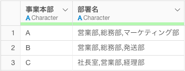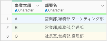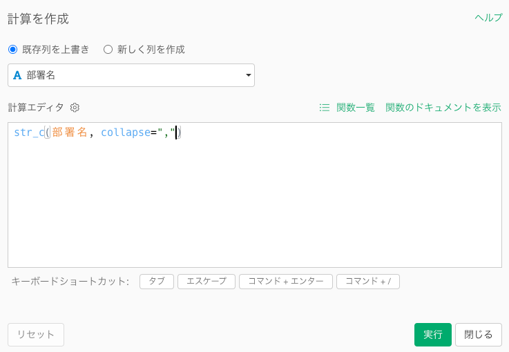 これで、「グループ化で指定した列の値が同じであれば、その値を統合(一つのセルにまとめる)する。ただし、値の間は『,』でつなぐ」という指定ができました。